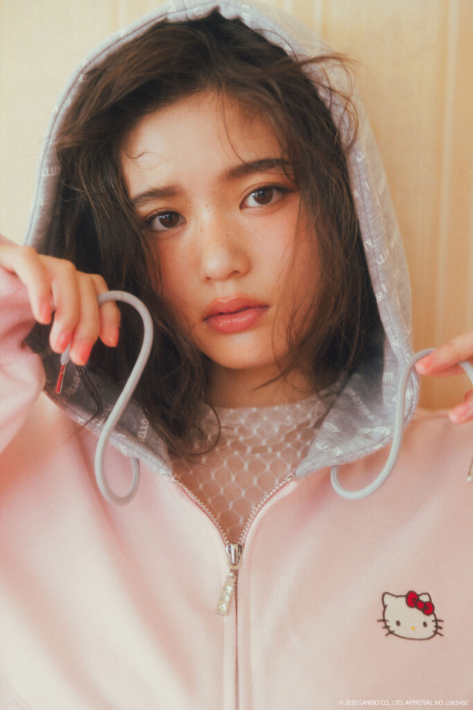 原田都愛が着こなす「CALNAMUR×HELLO KITTY」コラボコレクション。