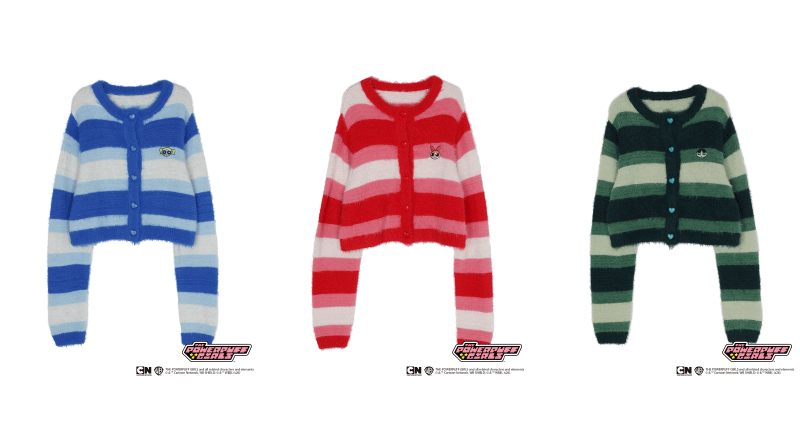 本コレクションでは、ガールズを主役にしたニットカーディガンと裏毛プルオーバーの全2型を展開。「CALNAMUR」ならではの甘さとエッジに、「パワーパフ ガールズ」のスーパーヒロインらしいエネルギーを落とし込んだ、特別感のあるコレクションに仕上げました。
